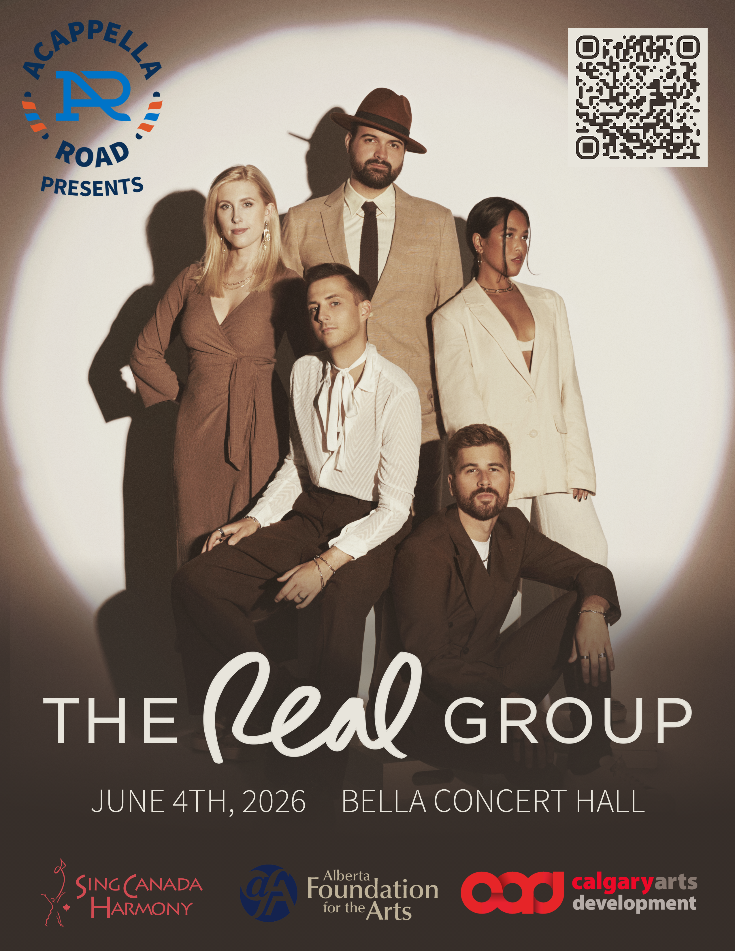 Coming all the way from Sweden, The Real Group is a world-class, internationally-renowned vocal ensemble specializing in pop, jazz, folk, and choral music presented in their signature a cappella style. For over 40 years, The Real Group has delighted audiences all around the world with an extensive library of over 200 songs, highlighting a wide variety of genres in both English and Swedish. This summer, they are joining forces with Acappella Road, Calgary's premier men's barbershop chorus, to celebrate the magic of harmony together in a one-night-only concert experience you won't want to miss. They will also be featuring the Chamber Choir and Ruby Vocal Jazz ensembles from the award-winning music program at Calgary's own Bishop Carroll High School, uplifting the next generation of singers in our great city. Join us on June 4th at the magnificent Bella Concert Hall for an unforgettable evening of song!